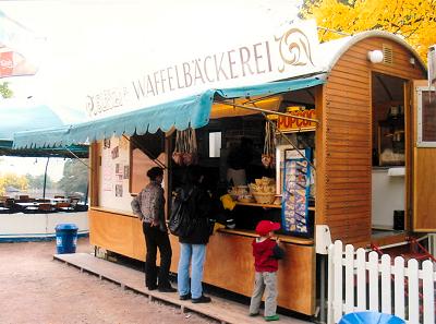 Verkaufswagen, Waffelbäckerei, Kaffee, Eis, Popcorn, Flammkuchen, historischer Jahrmarkt, Schausteller, Stuttgart, Killesberg